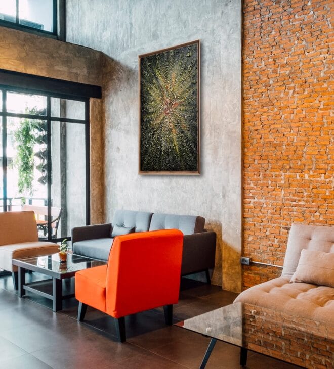 Een krachtig statement piece dat bijzonder goed tot zijn recht komt in moderne, ruime en architecturale interieurs, waar kleur, textuur en expressie een centrale rol mogen spelen.